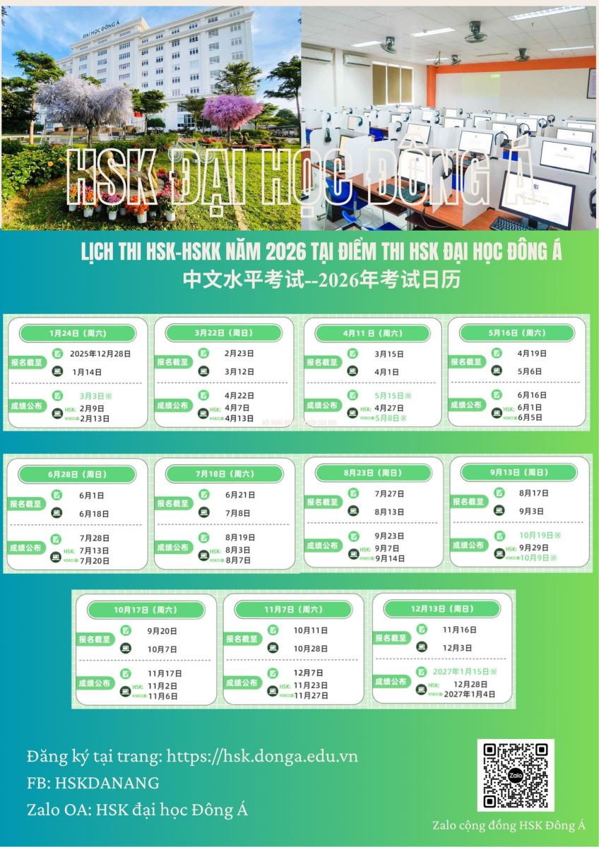 LỊCH THI HSK-HSKK NĂM 2026